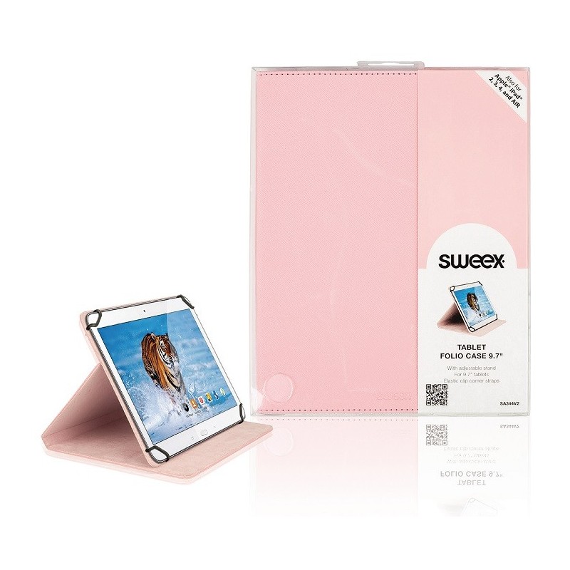 La custodia pieghevole Sweex Tablet da 9.7" proteggerà il tuo tablet da graffi e sporco ed inoltre potrà essere utilizzata anche come un supporto. Questa custodia per tablet ha elastici agli angoli per la chiusura e può essere utilizzata in modo da rendere la visione di video o la digitazione confortevole. Le connessioni rimangono accessibili, in modo da poter utilizzare il tablet senza rimuoverlo dalla custodia.