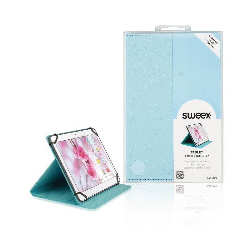 La custodia pieghevole Sweex Tablet da 7" proteggerà il tuo tablet da graffi e sporco ed inoltre potrà essere utilizzata anche come un supporto. Questa custodia per tablet ha elastici agli angoli per la chiusura e può essere utilizzata in modo da rendere la visione di video o la digitazione confortevole. Le connessioni rimangono accessibili, in modo da poter utilizzare il tablet senza rimuoverlo dalla custodia.