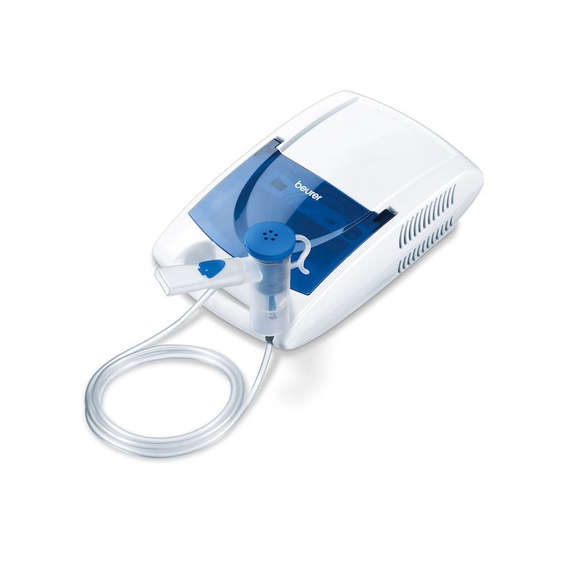 Aerosol a pistone Nebulizzatore 3 cc/min Pressione massima 1,45 bar Pressione operativa1,2 bar 1 velocità Boccaglio Forcella nasale Mascherina Mascherina bimbi Ad aria compressa Colore bianco-blu